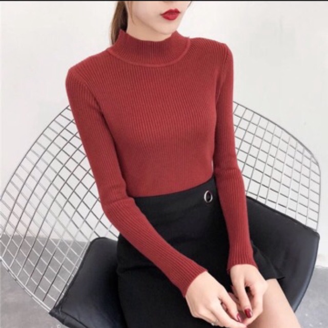 Tên sản phẩm: Áo Len Dệt Kim Dài Tay Cổ 3cm Mềm Ấm – CHIPXINHXK